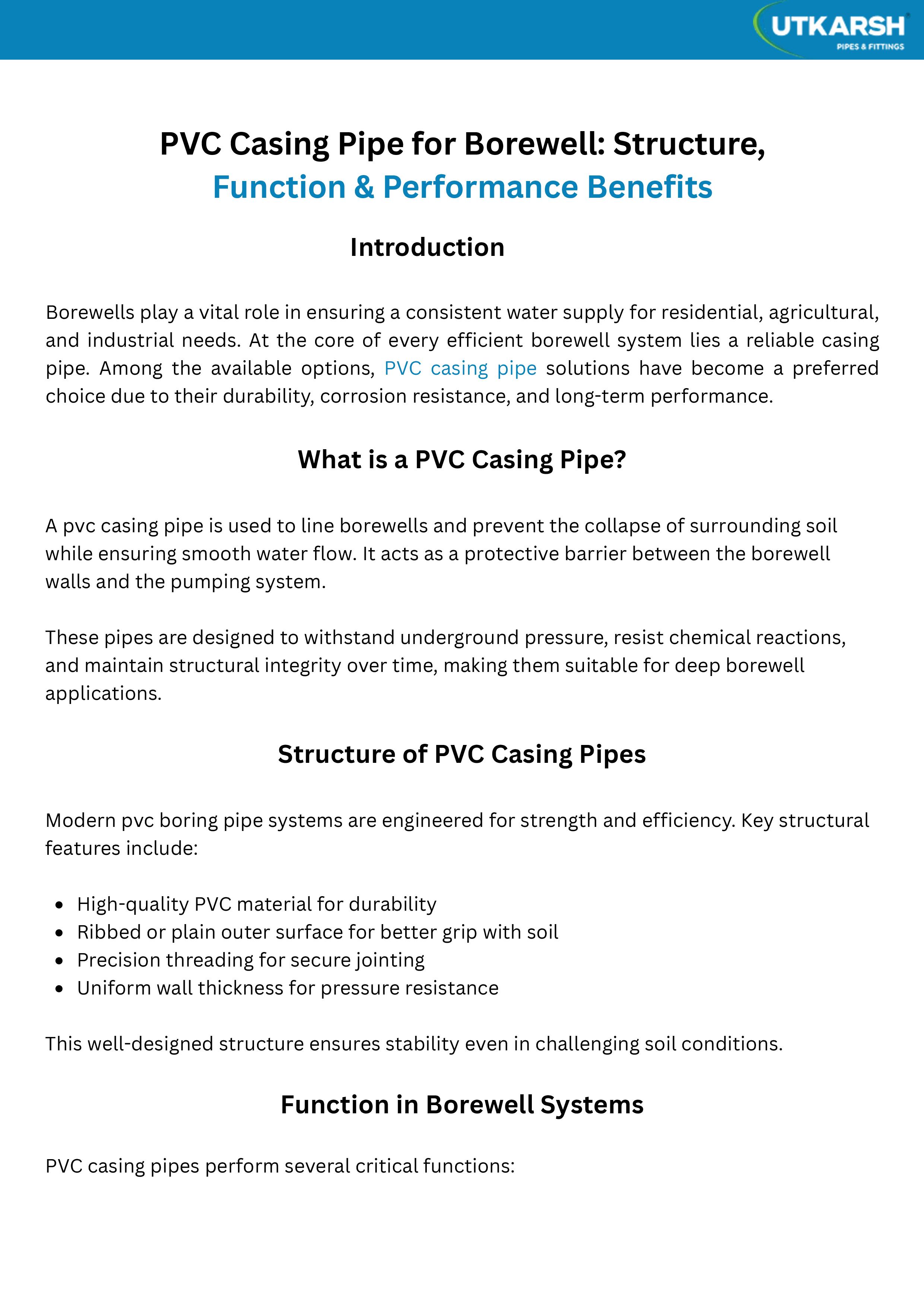 PVC Casing Pipe for Borewell Structure, Function & Performance Benefits by pipessuppliers - Issuu