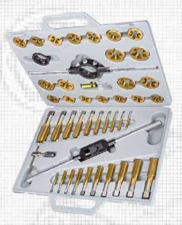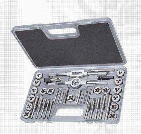 39 Piece Metric / Imperial Tungsten Steel Tap & Die Set Set Includes: Long Handle & T-Handle Tap Wrench, Long Handle Die Wrench, Metric & Imperial Screw Pitch Gauge