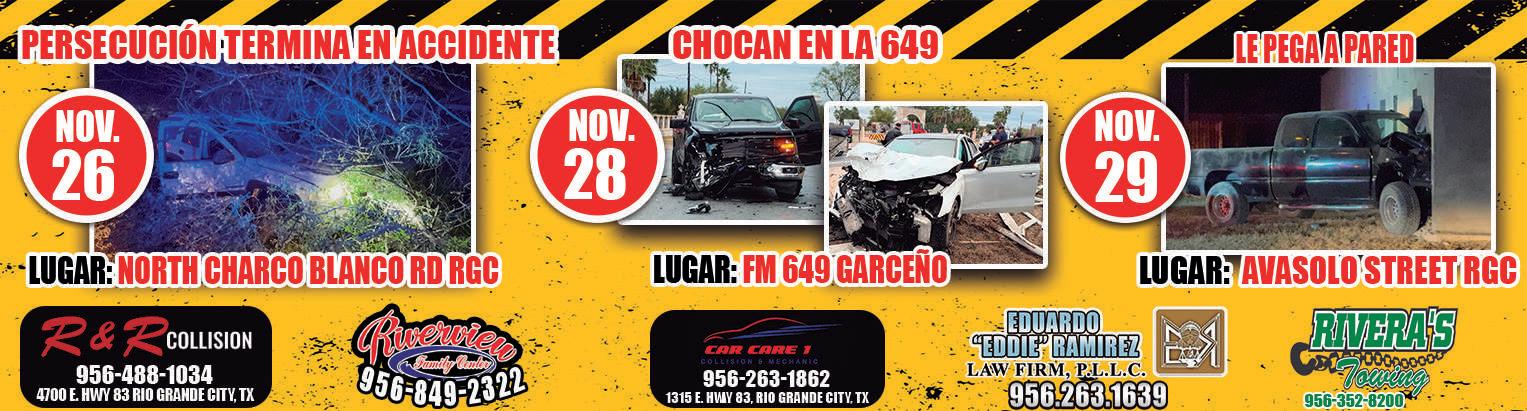 incidente ocurrido la noche del viernes 29 de Noviembre, una camioneta Chevy Silverado de color negro se estrelló contra la pared de unas oficinas ubicadas en la intersección de Avasolo Street y Guerra, en Rio Grande City, después de una intensa persecución. La camioneta, que había sido objeto de seguimiento por parte de las autoridades, terminó su marcha al impactarse contra la estructura de un edificio, provocando daños materiales, aunque afortunadamente no se reportaron heridos graves. La persecución, que involucró a unidades de la Policía de Rio Grande, Alguacil del Condado Starr y la Patrulla Fronteriza, comenzó cuando las autoridades intentaron detener el vehículo en sospecha de tráfico ilegal de personas. Durante el operativo, se logró la detención de al menos tres personas, todas ellas de origen inmigrante, quienes fueron arrestadas por ingresar ilegalmente al país.
