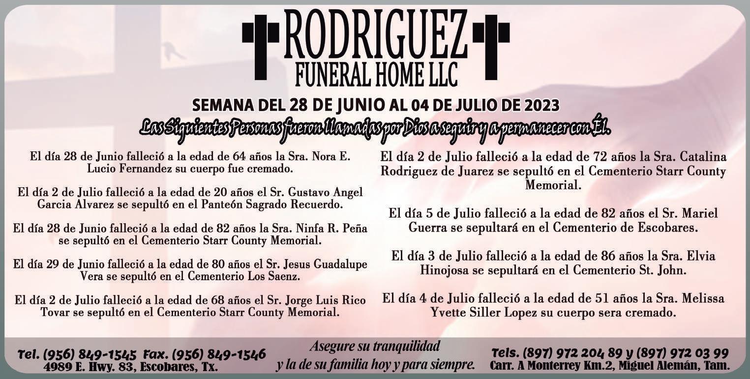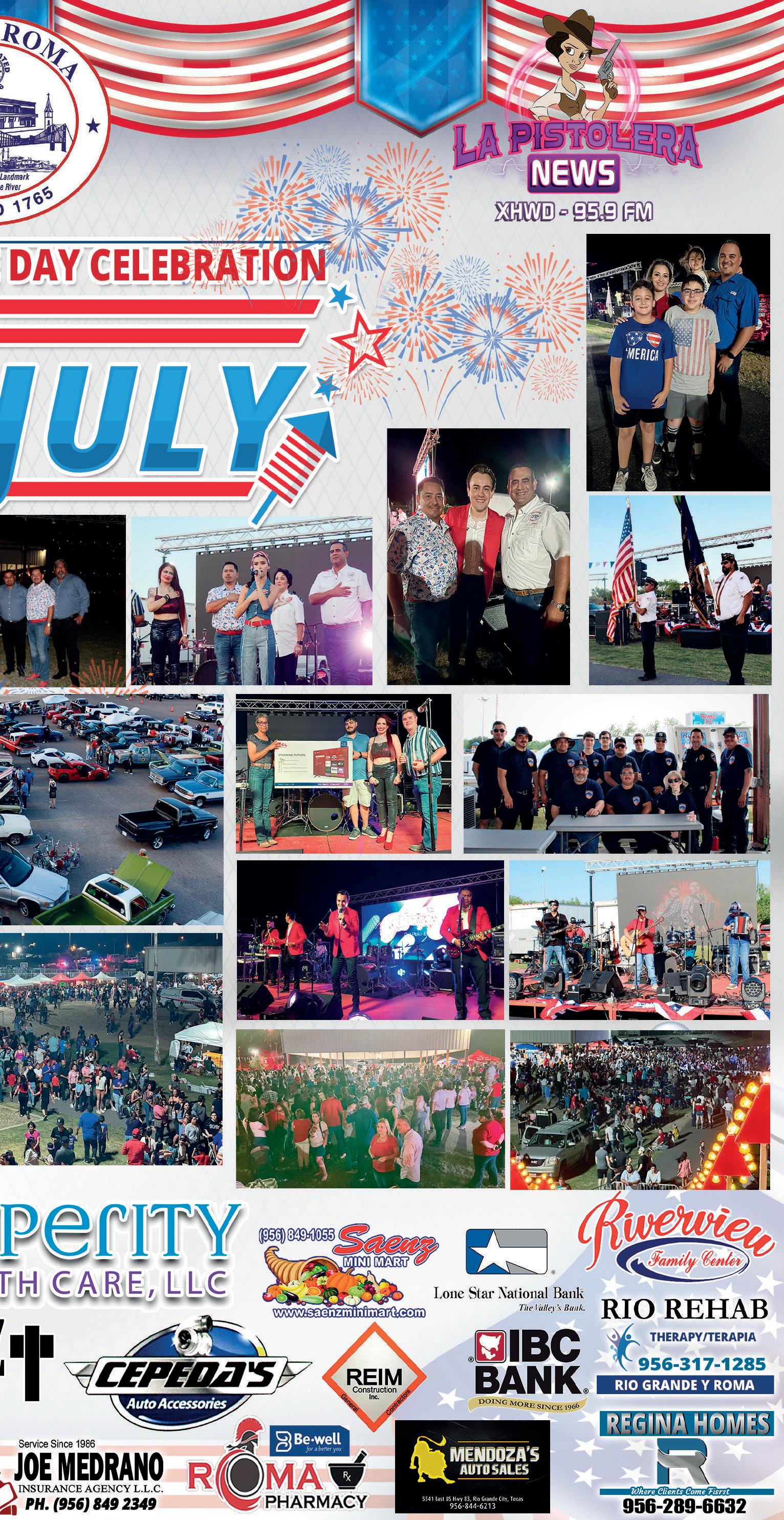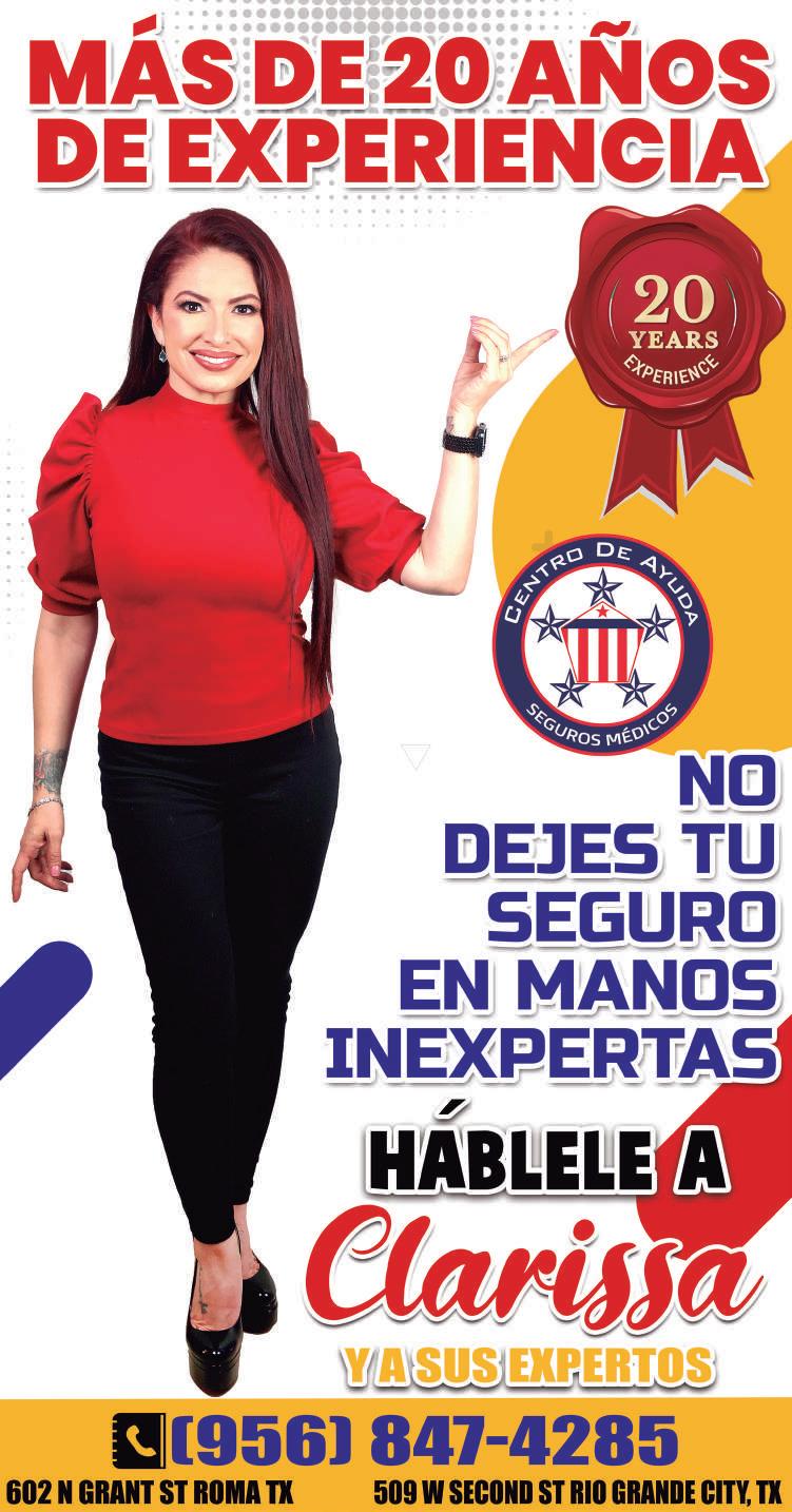 Viernes 07 de Julio de 2023 2 CLARISSA GONZALEZ Director General / Editor USA RAMON BALBOA PEDRAZA Ventas / Editor Mex. ARNULFO A. TRUJILLO ORTEGA Diseñador Gráfico DIEGO BALBOA Social Media / Distribución MÉXICO Calle quinta #226 zona centro norte Cp 88300 Cd. Miguel Alemán, Tamps. Tel.: (897) 972-1949 / info@lapistolera.com DISTRIBUCIÓN SEMANAL DE 7,000 EJEMPLARES EN: Centros Comerciales, Restaurantes, Hoteles, Unidades Médicas, Departamentos Escolares, Instituciones Públicas, Agencias de Autos, Oficinas, Comercios, Bancos y Más. COBERTURA INTERNACIONAL Zapata, Roma, Escobares, Rio Grande, La Grulla, Sullivan, La Joya, Peñitas. Miguel Alemán, Ciudad Mier y Nva. Ciudad Guerrero, Tam. ESTADOS UNIDOS 602 E Grant St Roma, TX 78584 PH 956-267-1222 / info@lapistolera.com DIRECTORIO