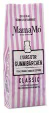 Für Werbegeschenke und Give-aways füllt die Mehrfachtrichtermaschine die Bärchen in Beutel ab: vier pro Tütchen. Für MamaMo® landen die süssen in rosa-weiss gestreiften Beuteln, die sauren in grün-weiss gestreiften. Diese kommen zum Verkauf in Bäckereien und Feinkostabteilungen.