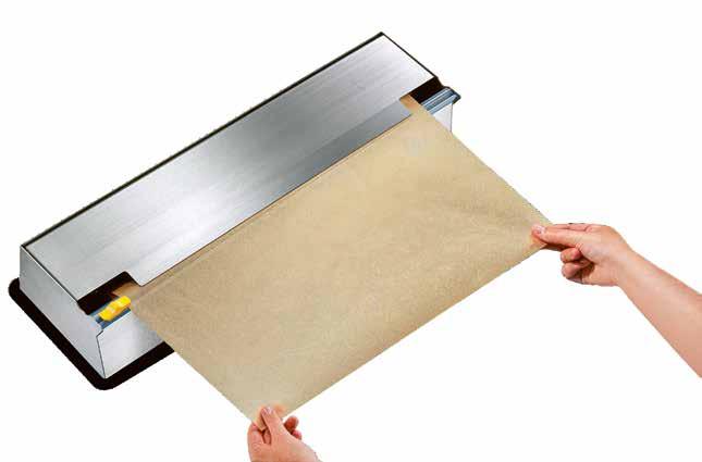 Für eine effiziente, hygienische und produktschonende Arbeitsweise. Der neue Backstar Cut Dispenser aus Edelstahl bringt Präzision und Freiheit in die Küche. Ausgestattet mit dem Swiss Cutting System und gefüllt mit Backstar Papier in GN-Breite, lässt es sich per präzisem Schnitt an jede Situation anpassen: ob Meter-Brote, Patisserie oder Take-away. Immer genau so viel Backstar-Papier, wie gebraucht wird.