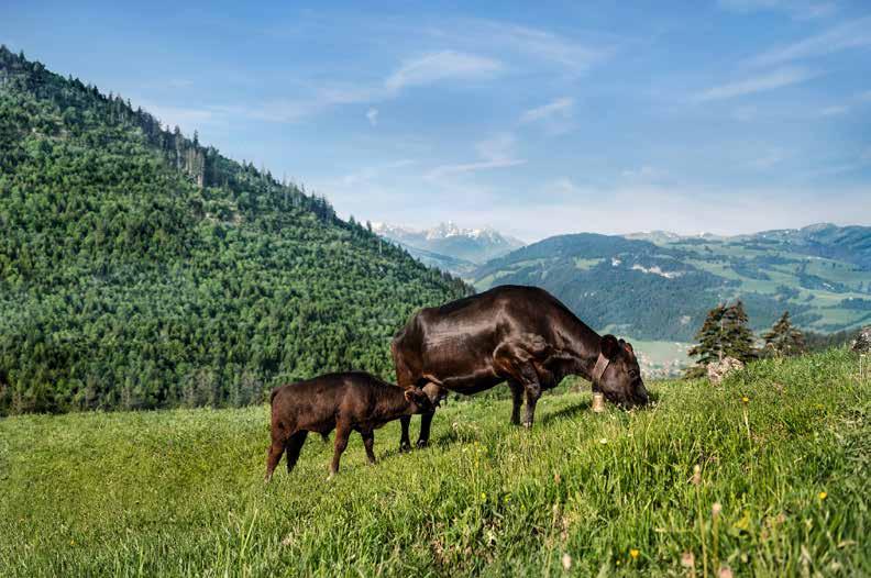 Die Anforderungen gehen jedoch noch weiter: So wachsen die Tiere bei Swiss Black Angus artgerecht bei ihren Müttern auf und werden ohne den Einsatz von Soja gefüttert. Auch andere Betriebe bieten ihren Tieren zusätzlichen Weidegang im Sommer, was ihren natürlichen Verhaltensweisen entspricht. In Zusammenarbeit mit Partnern setzt IP-SUISSE innovative Projekte um, um die Tiergesundheit kontinuierlich zu verbessern (z.B. zur Förderung von gesunden Kälbern) und eine zukunftsorientierte Tierhaltung zu gewährleisten.