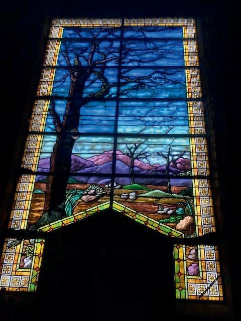 Morning sunlight through the stainedglass window of the chapel