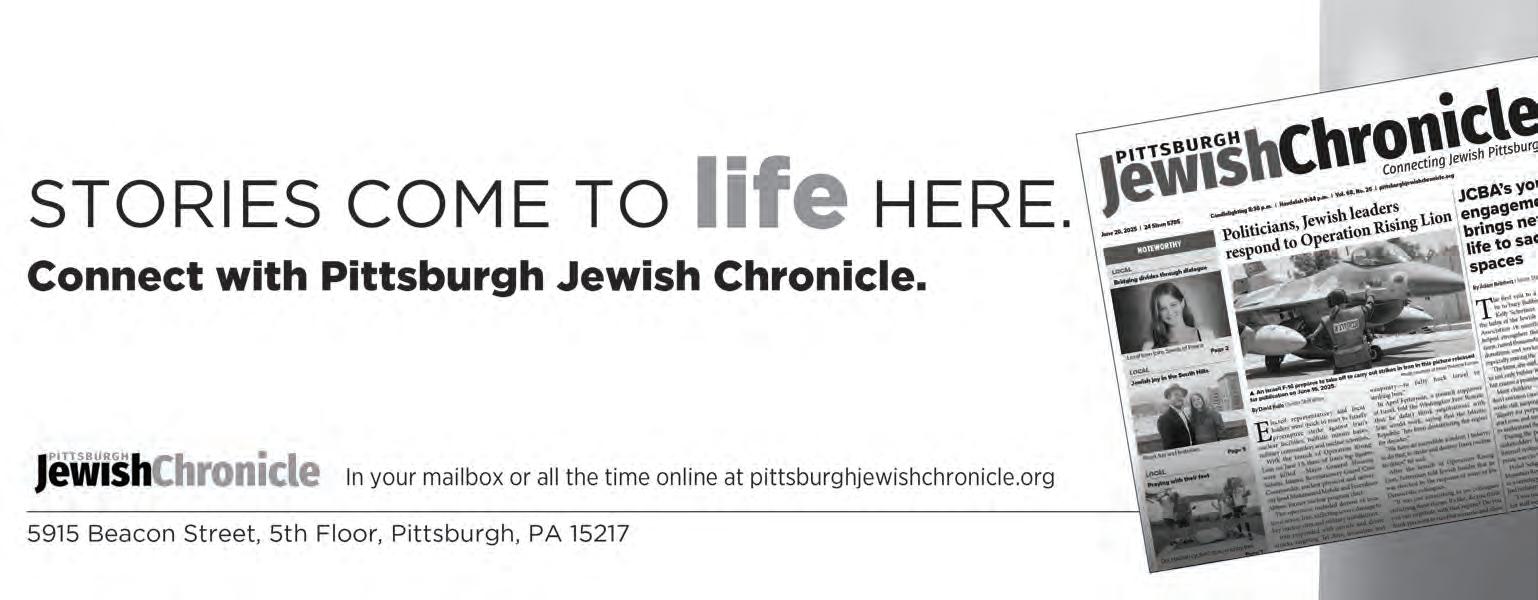 TO ADVERTISE advertising@pittsburghjewishchronicle.org 412-687-1000, ext. 1