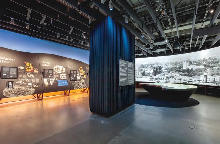 “Los Angeles: From Film Frontier to Industry Town, 1902-1929” features a digital topographical map of L.A. alongside a wall-length video screen depicting the city’s landscape and its progression, highlighting key landmarks that contributed to the growth of the film industry — from Warner Brothers Studios to influential Jewish sites such as Wilshire Boulevard Temple.