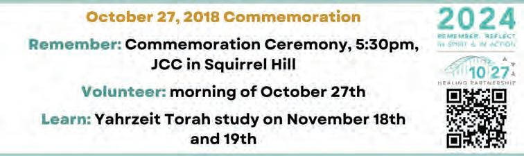 Join the Pittsburgh Jewish community for an Oct. 27 Commemorative Ceremony 5:30 p.m. Jewish Community Center of Greater Pittsburgh. 1027healingpartnership.org/ event/commemoration-ceremony-for-theoct-27th-2018-synagogue-shooting/.