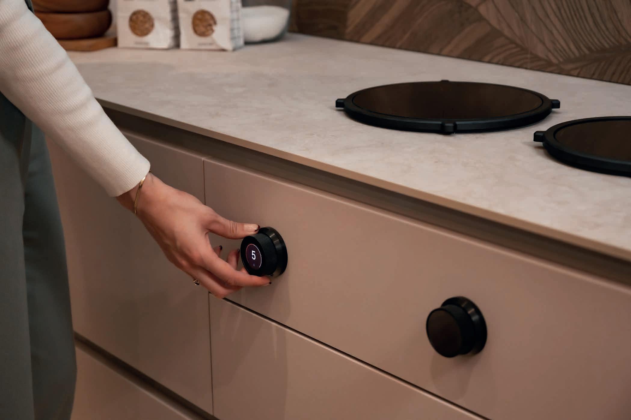 Le manopole dei moduli a induzione di PITT cooking vengono fornite complete di ghiera, che può essere installata sul frontale oppure sul piano di lavoro, offrendo così maggiori opportunità in fase di progetto.