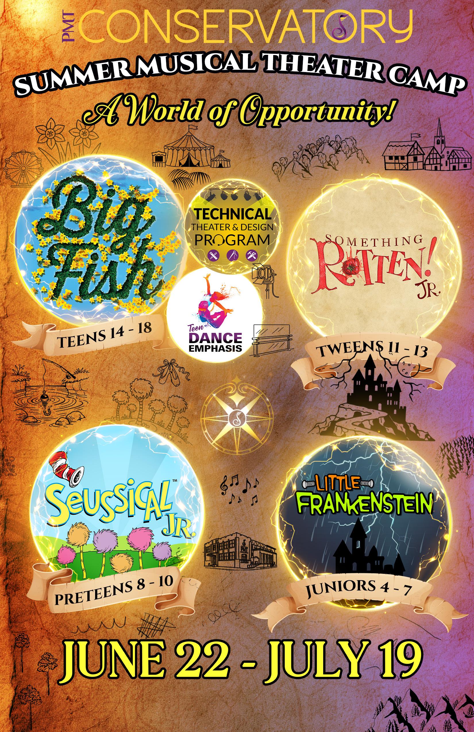 is built on arts education, development, mentorship, and providing performance opportunities for young artists. Students at PMT Conservatory receive a truly unique experience to use their training in fully produced productions of their own in which they take on roles as performers and technical theater crew. Whether a student wishes to pursue a career in the arts or another field, Young Artist Productions provide an opportunity for growth and building transferable life skills in our future leaders. Patrons attending Young Artist Productions will be a part of it all as they experience and enjoy the best of our region’s talented youth in professional-quality entertainment!