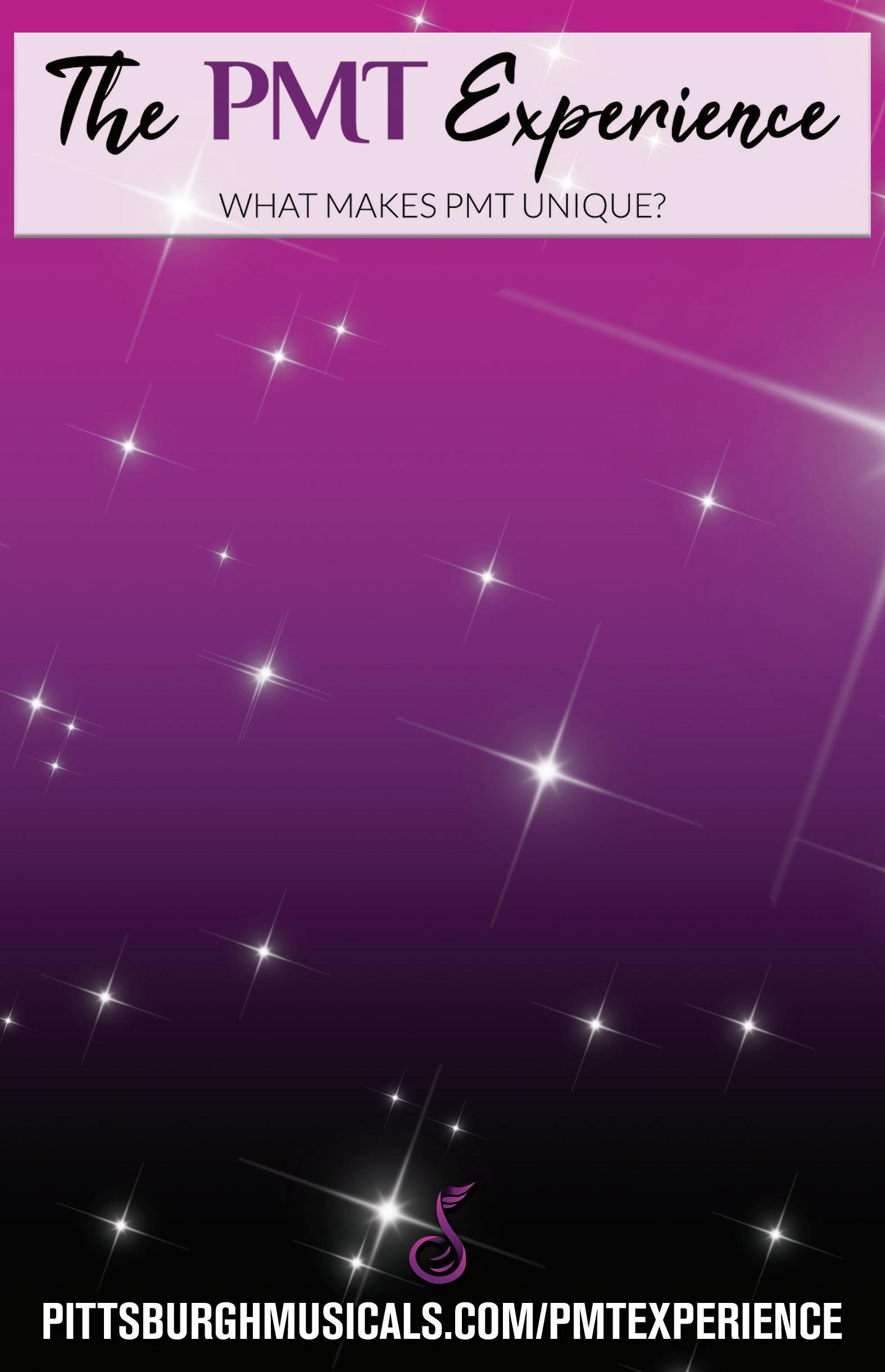 Pittsburgh Musical Theater (PMT) is a 501(c)(3) non-profit arts education organization committed to youth development. We cultivate a diverse creative community and future leaders with transferable life skills through a uniquely-designed convergence of training, mentorships, and professional performances. In a nurturing environment that promotes wellness, safety, and freedom of expression, our integrated opportunities for young artists and local professionals create quality productions for all audiences, foster a community of belonging, and enhance the vibrancy of our region.