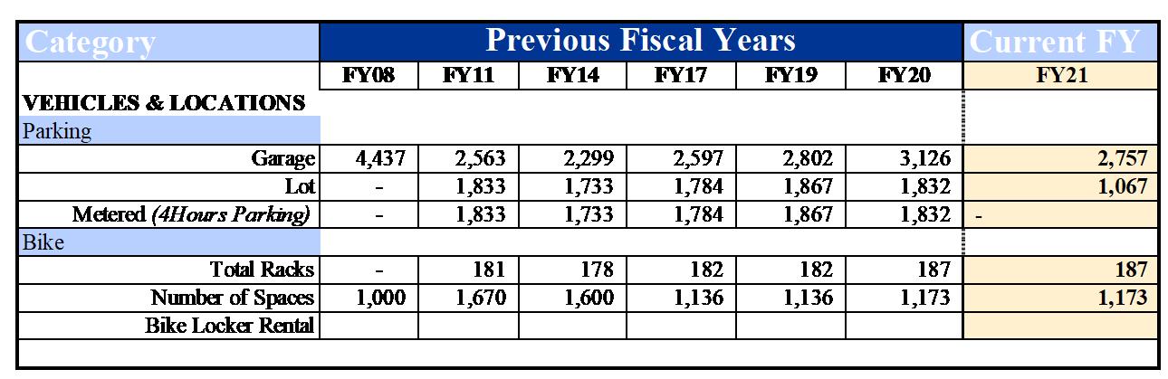 Table 13 - Vehicle & Bike Parking Locations - Year-to-Year Comparison 30