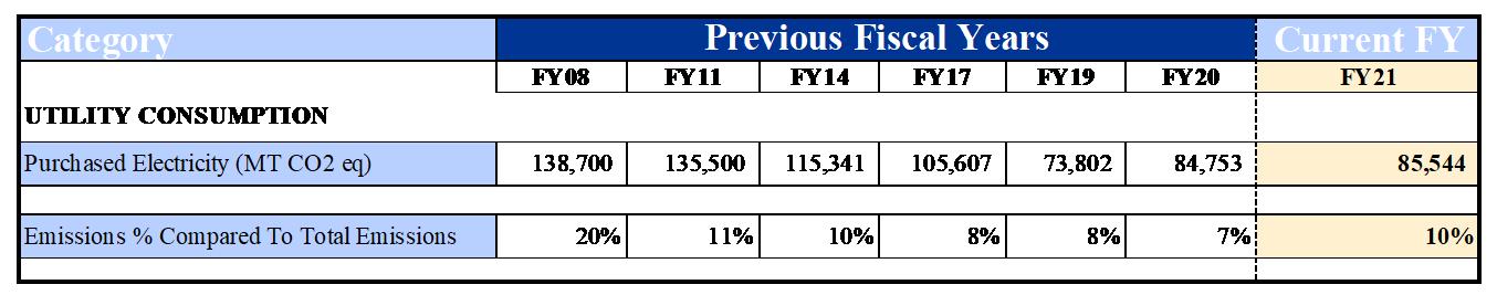 Steam: The University’s FY08 GHG benchmark year was strategically selected prior to operation of the Carrillo Street Steam Plant to help benchmark that decision and its impacts. In FY20, there was a 19% increase in steam produced by CSSP (compared to FY19), paralleled by a 22% decrease in steam purchased from BBP this trend slightly changed in FY21 (from FY20, as shown in Table 3), with a 2% decrease in demand from CSSP, while steam purchased from BBP increased by 20%.