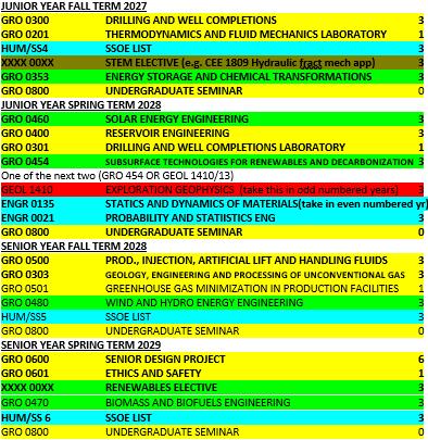 Many electives are Renewables-related, others are Natural Gas & Oil-related, others are sustainability- or climate-related