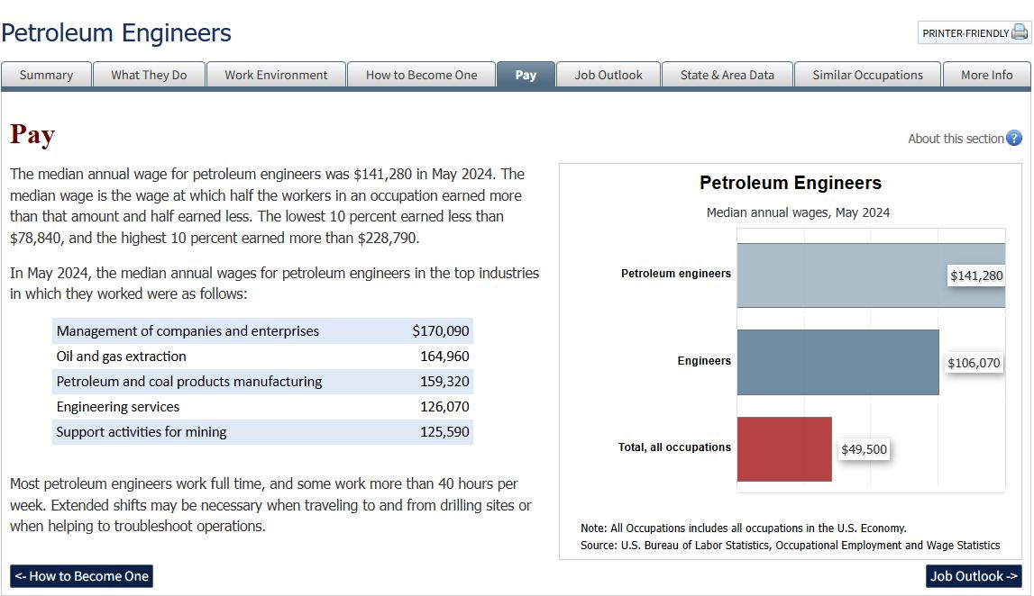 Notably, it does note that "high earnings do not always correlate with broad job availability," and that there will be "relatively few" annual job openings for petro engineering over the next decade. Which is just another reason your program's broader focus on other kinds of energy engineering is so relevant!