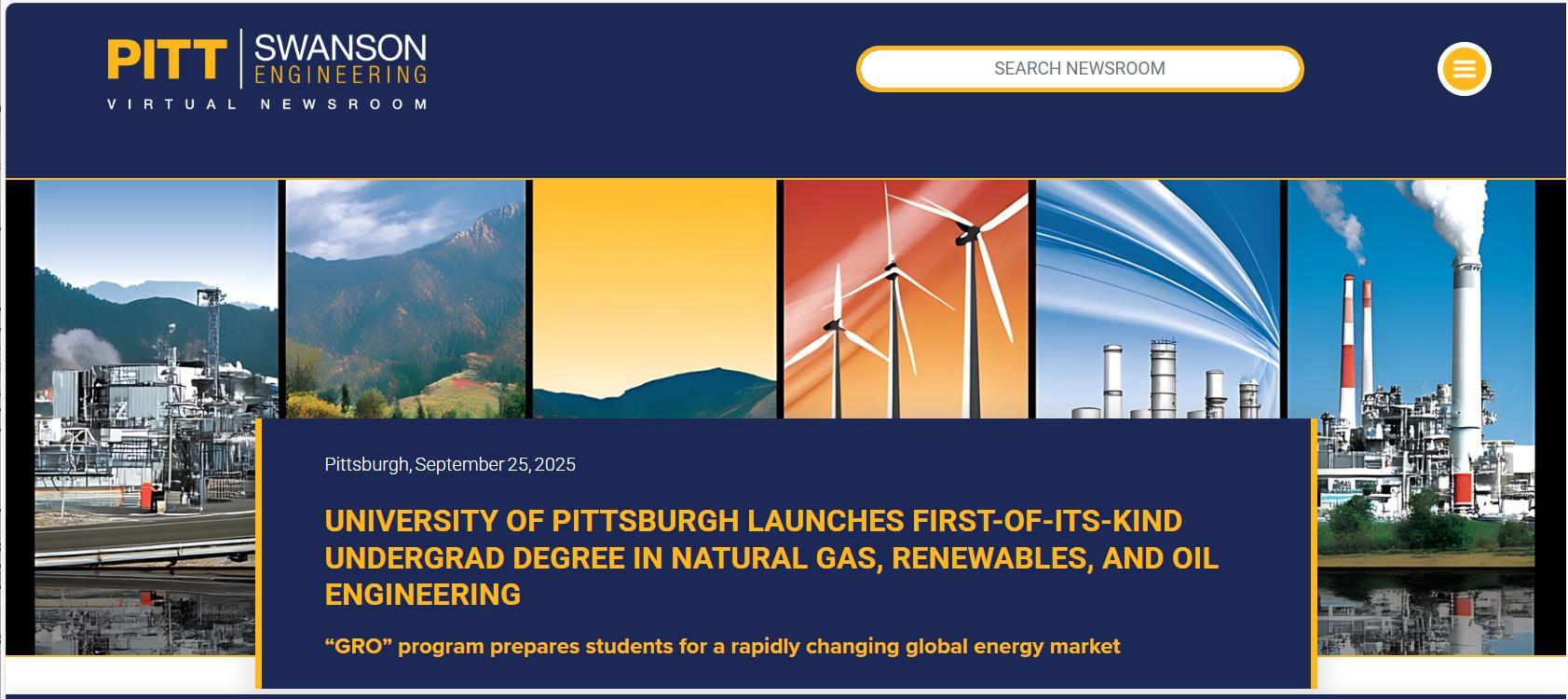 Pitt’s GRO program recognizes that natural gas, oil, renewable energy, nuclear energy and carbon capture all play a vital role in the future of the US economy, and that an expanding amount of renewable energy is highly desirable.
