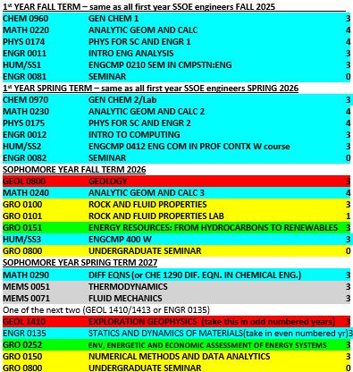 Red courses: required Geology courses