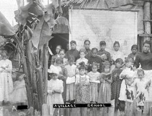 La Hacienda Rascón fue una enorme propiedad que alojaba a 14 mil trabajadores. Las mujeres trabajaban en el casco, mientras que los hombres lo hacían en los campos, ingenios y planta de energía. Durante la cosecha de caña y cuando se preparaba la siembra, la fuerza de trabajo se complementaba con cientos de trabajadores de medio tiempo. Sin embargo los propietarios que eran estadounidenses, explotaban a los trabajadores mexicanos. Además de caña de azúcar, la finca producía madera, mármol, tabaco, mezcal, palmeras, maíz e ixtle, planta fibrosa usada para hacer cuerdas. En la imagen, la escuela para los hijos de los trabajadores.