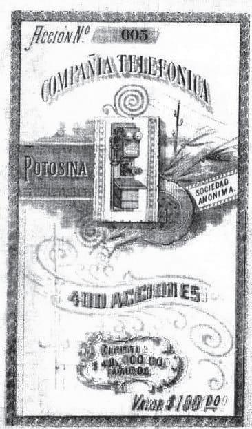 Potosina ofrecía sus servicios a los habitantes de la ciudad capital y también ofrecía una oportunidad de negocios vendiendo acciones como la que aparece en esta imagen.