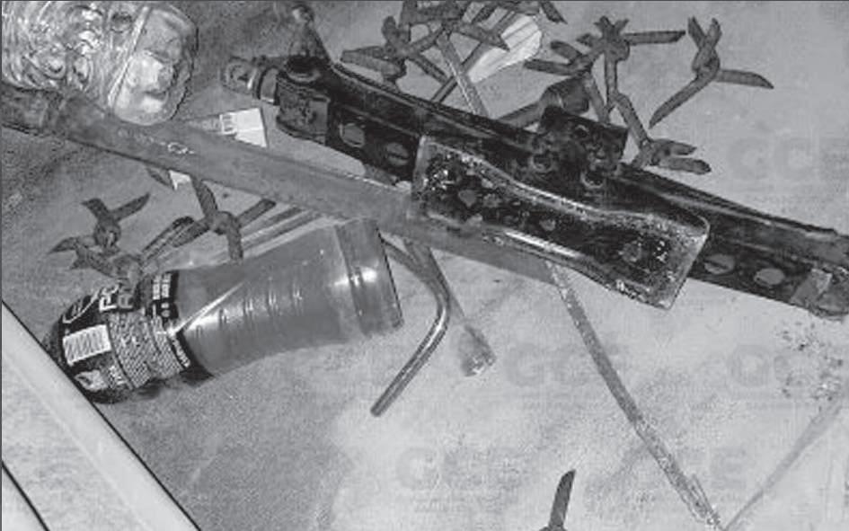 objetos de varilla para tratar de dañar los neumáticos de los carros radio patrulla; las fuerzas del orden público continuaron con el seguimiento, tras ver que eran superados en números, dichas personas abandonaron la unidad metros más adelante después de que se impactaran contra una camioneta particular, por lo anterior se procedió al aseguramiento de la unidad