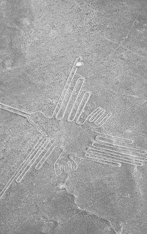 gigantes en el desierto de Nazca, Perú. Se ha especulado que estas líneas, visibles solo desde el aire, podrían haber sido construidas para ser vistas por seres extraterrestres.