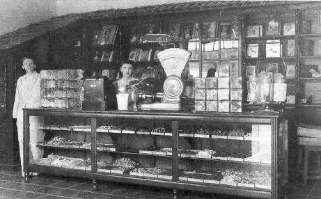 ¡Se le conocía como la Calle del Sagrado Corazón, cuando en 1930 Don José Costanzo Navazotti decidió probar suerte y fabricar dulces más dulces que los besos de la novia, y su primer expendio fue precisamente en esta calle que hoy conocemos como Galeana. En la imagen, la primer tienda con su primer mostrador.