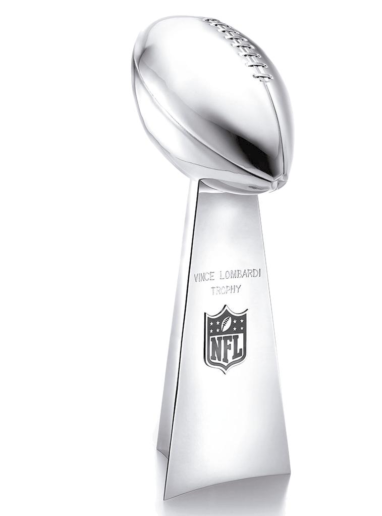 El nombre de trofeo del Super Bowl es: Lombardi Trophy (antes World Championship Trophy), renombrado en 1971 tras la muerte de Vince Lombardi, otrora entrenador de los Green Bay Packers. Es producido en plata por Tiffany & Co., en plata esterlina, valuado en 25 mil dólares.