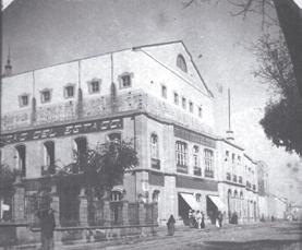 Mucho antes de que se construyera el Cine Alameda, ya existía ahí una casa de la que en esta imagen solo se ve la reja, junto a la escuela de música, pero estaba en la esquina de Constitución y Universidad.