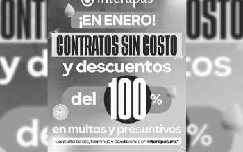 A diez días de concluir el mes, INTERAPAS mantiene vigente el programa “Ponte al día con INTERAPAS”, que permite contratar el servicio de agua sin costo y con descuento del 100 por ciento en multas y cargos presuntivos.