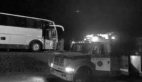 entre los fierros, sin signos vitales. Los pasajeros del autobús fueron revisados sin que se reportaran lesionados. La zona fue asegurada para las diligencias correspondientes y personal de la Fiscalía General del Estado realizó el levantamiento del cuerpo y las investigaciones para determinar cómo ocurrió el accidente.