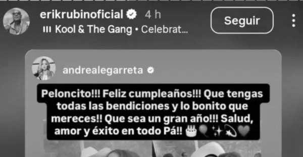 Andrea Legarreta sorprendió al dedicar un mensaje público de cumpleaños a Erik Rubín, evidenciando la relación cordial que mantienen por sus hijas. El músico respondió con el mismo tono, lo que generó reacciones, especialmente tras confirmarse la nueva relación de la conductora. En paralelo, Rubín fue captado con una mujer en un centro comercial, avivando rumores de romance que él no ha confirmado. El intercambio reforzó la imagen de respeto entre la expareja.