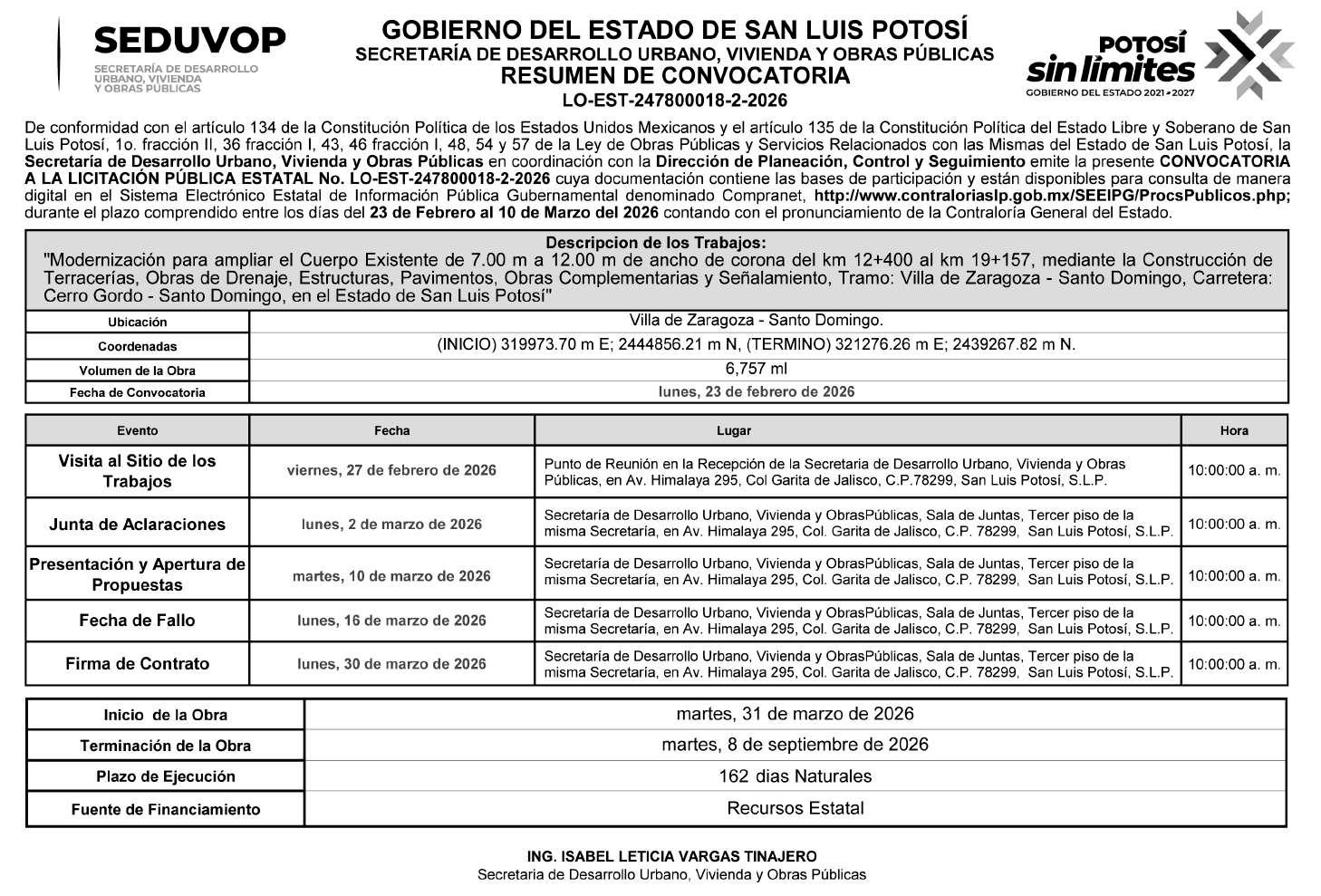 San Luis Potosí; y de Adquisiciones para el Estado de San Luis Potosí.