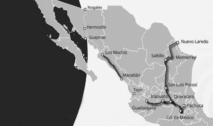 tramo de aproximadamente 310 km de vía férrea que unirá la capital potosina con la ciudad de Saltillo, Coahuila, y que se espera concluya antes de 2030. Estas rutas forman parte de un mapa integral que, al concluir su desarrollo, conectará la Ciudad de México con importantes destinos en el Bajío, el norte y la frontera con Estados Unidos.