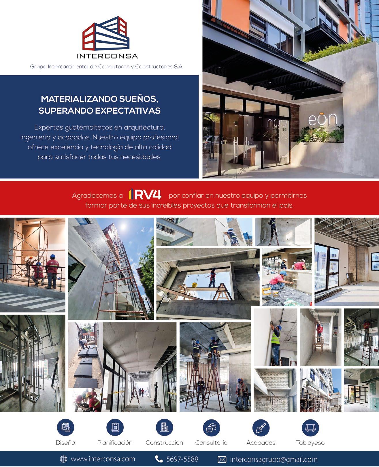 “Iniciamos actividades con RV4 Desarrollos durante la pandemia del COVID-19, apoyando en actividades de obra civil en el proyecto de Ascend, una edificación vertical de oficinas en zona 9 de la Ciudad de Guatemala. Después se unieron al equipo de Eon, una serie de apartamentos modernos en zona 10, un punto clave para el sector empresarial”.