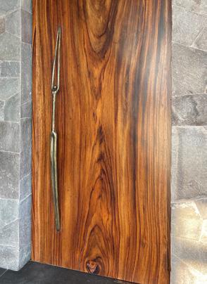 Exquisite Surfaces, fabricada en Italia. ¨Buscábamos un diseño que pudiese simular la piedra volcánica, pero con cualidades de bajo mantenimiento, conductividad térmica y efecto antideslizante.¨ Aclaran.