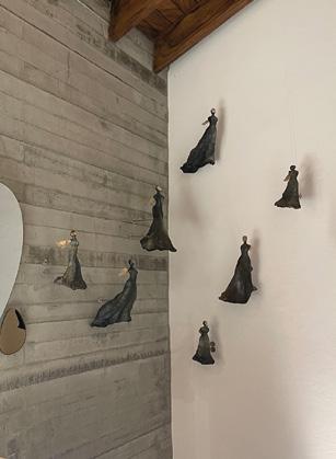 La pared fue intervenida con una instalación de figuras femeninas en movimiento de la artista y escultora Pina Pinetta; y la manecilla de la puerta de ingreso a este espacio, representa una figura femenina, elaborada por el escultor Luis Ruano.
