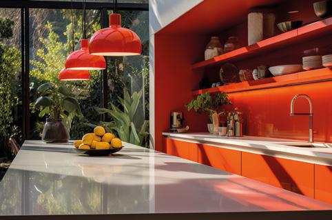 El gran formato amplía la percepción visual, minimiza uniones y optimiza los procesos de instalación. La piedra sinterizada responde con eficacia en cocinas, baños, fachadas y mobiliario, donde ofrece higiene, durabilidad y una estética serena.