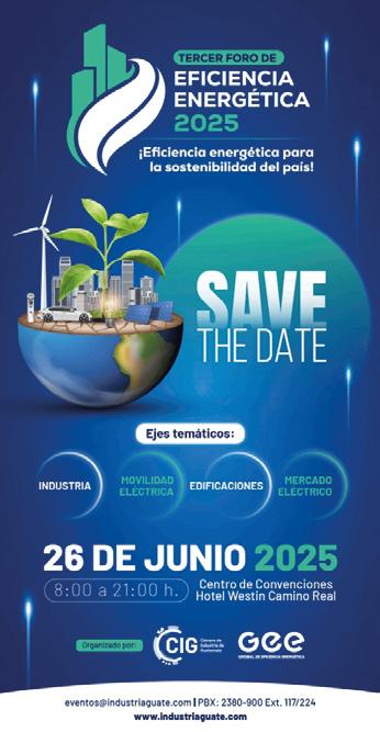 El 26 de junio de 2025, se celebrará el Tercer Foro de Eficiencia Energética en el Centro de Convenciones del Hotel Westin Camino Real, en Ciudad de Guatemala. Organizado por la Cámara de la Industria de Guatemala, este evento reunirá a profesionales, empresarios y especialistas para abordar estrategias de sostenibilidad enfocadas en la eficiencia energética en sectores como la industria, movilidad eléctrica, edificaciones y el mercado eléctrico. El foro está abierto al público interesado en el desarrollo sostenible y la productividad, con opciones de entrada que incluyen conferencias, almuerzo y cóctel. Para más información o inscripciones, se puede contactar al (502) 2380 9000 ext. 117/224