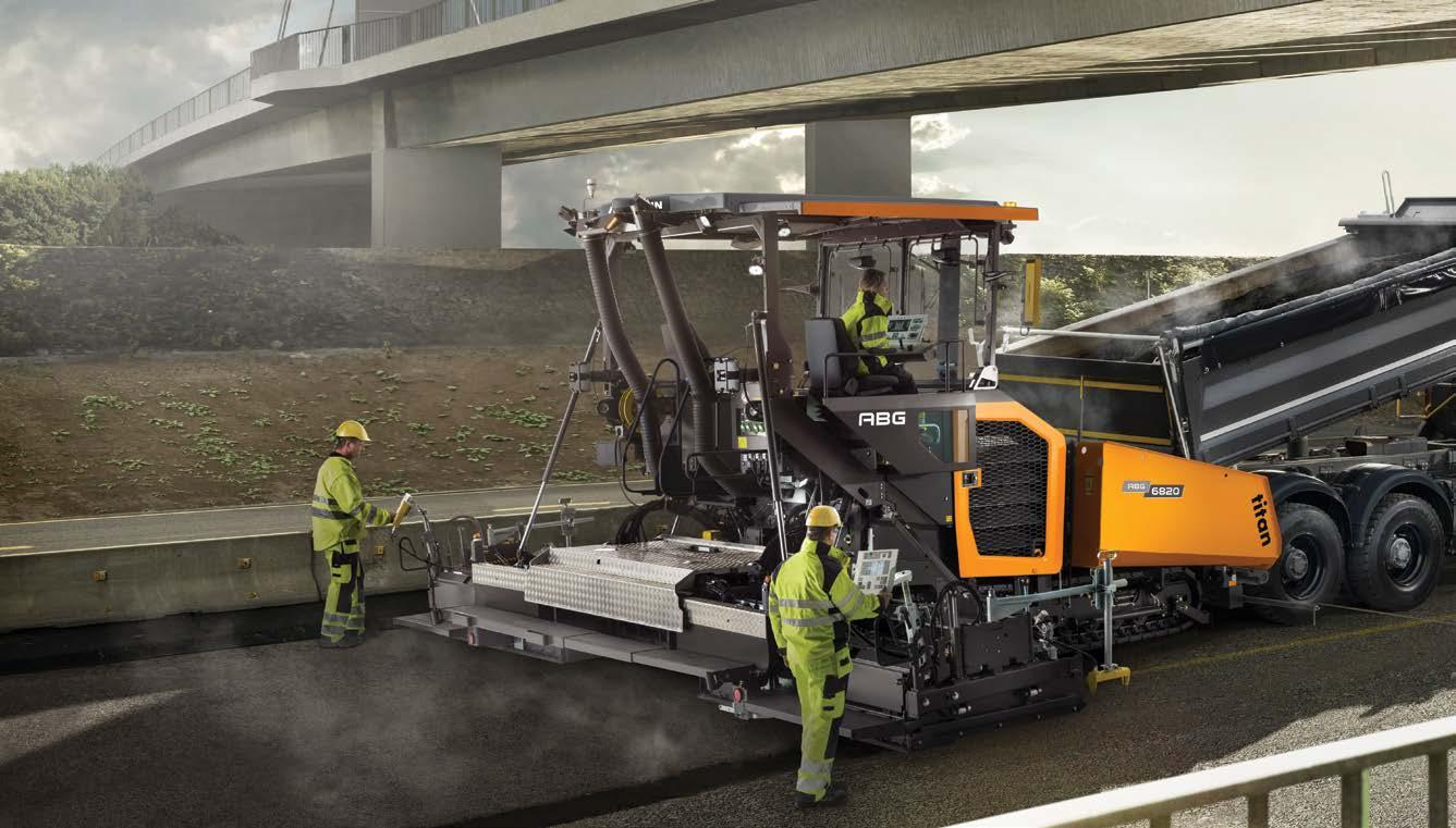 ABG provided the first hydraulically adjustable, highcompaction screed on the global market. Recent advances include the e+ screed heat system, which can save 30 minutes of warmup time each shift while also reducing CO2 emissions.