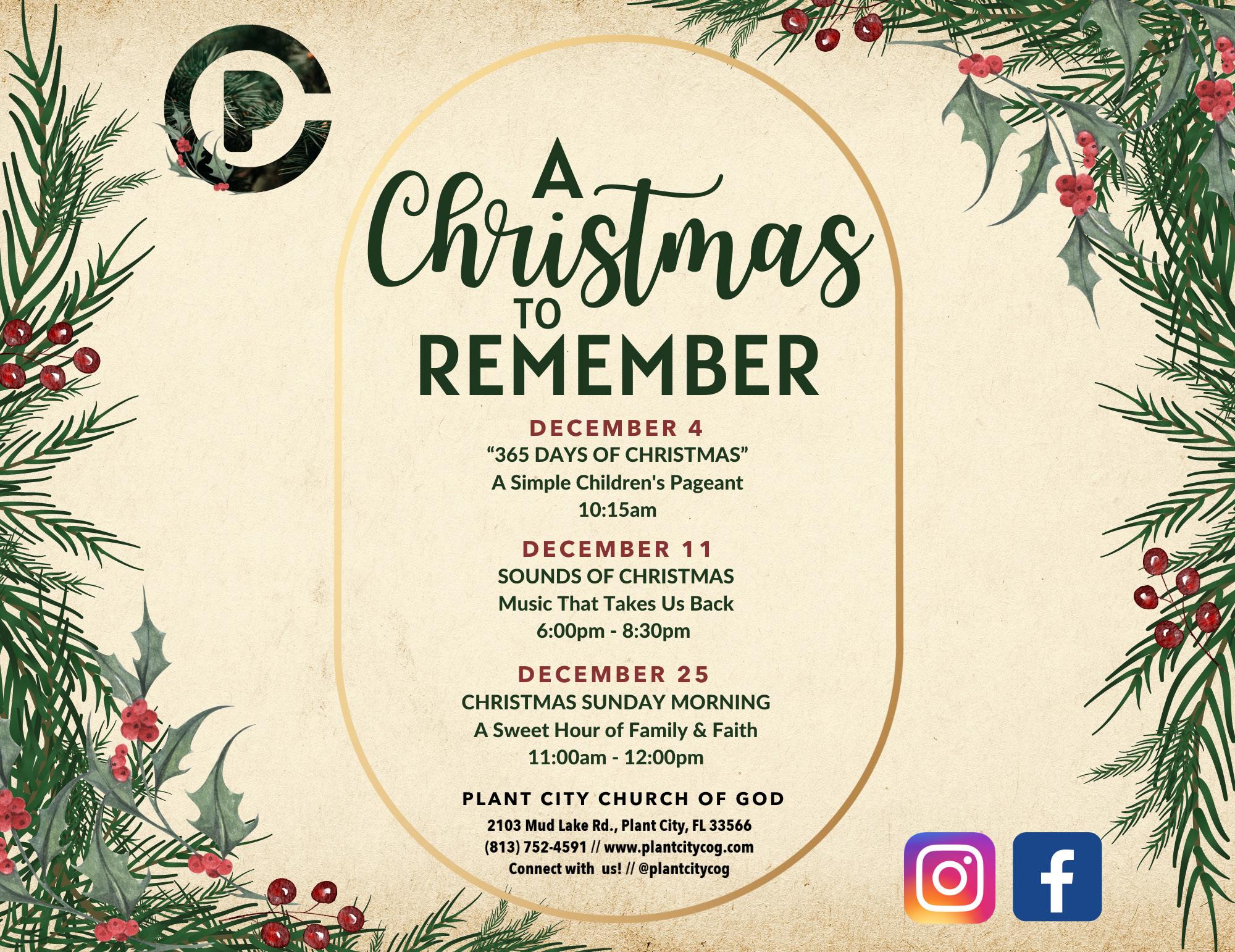Location: Plant City First Church of God, 601 North Gordon Street, Plant City Dates: Sat., Dec. 10, 3 p.m. and 7 p.m. Cost: FREE