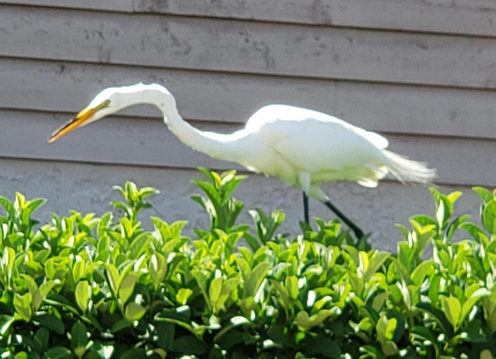 Judy Wise caught this moment where an egret was strolling on top of a hedge and looking for food in Walden Lake.