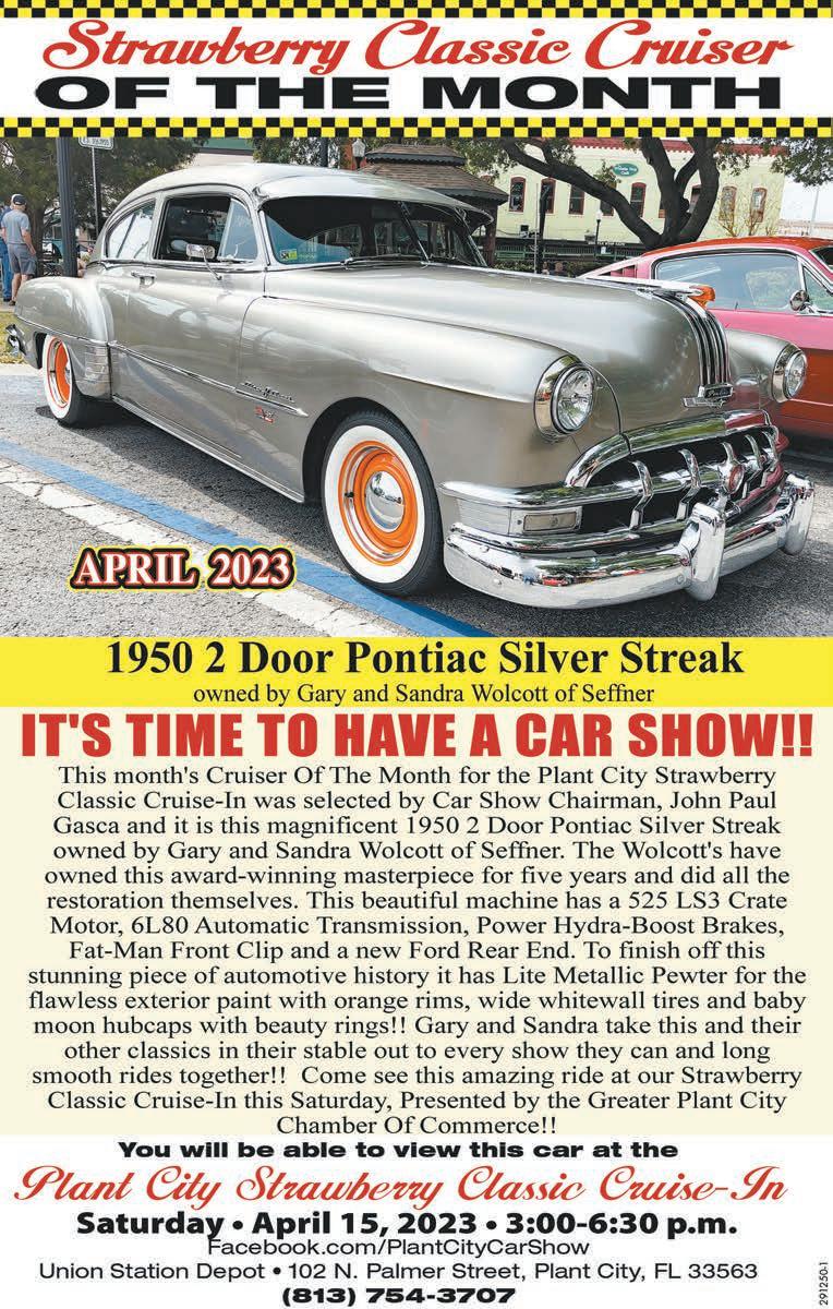 3 to 6:30 p.m. at 102 N. Palmer St. The Plant City Strawberry Classic Cruise-In is back on Saturday, April 15, rain or shine. Cars and trucks of all makes, models and years can register for free starting at 3 p.m. Live music by DJ John Paul Gasca.