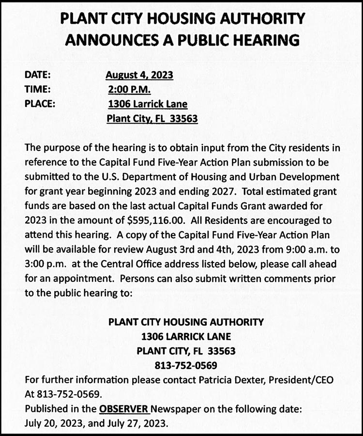20 PLANT CITY OBSERVER | THURSDAY, JULY 20, 2023 PlantCityObserver.com