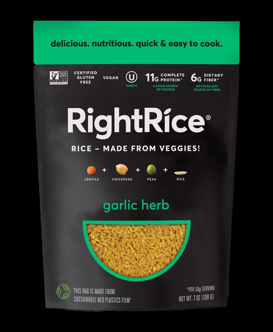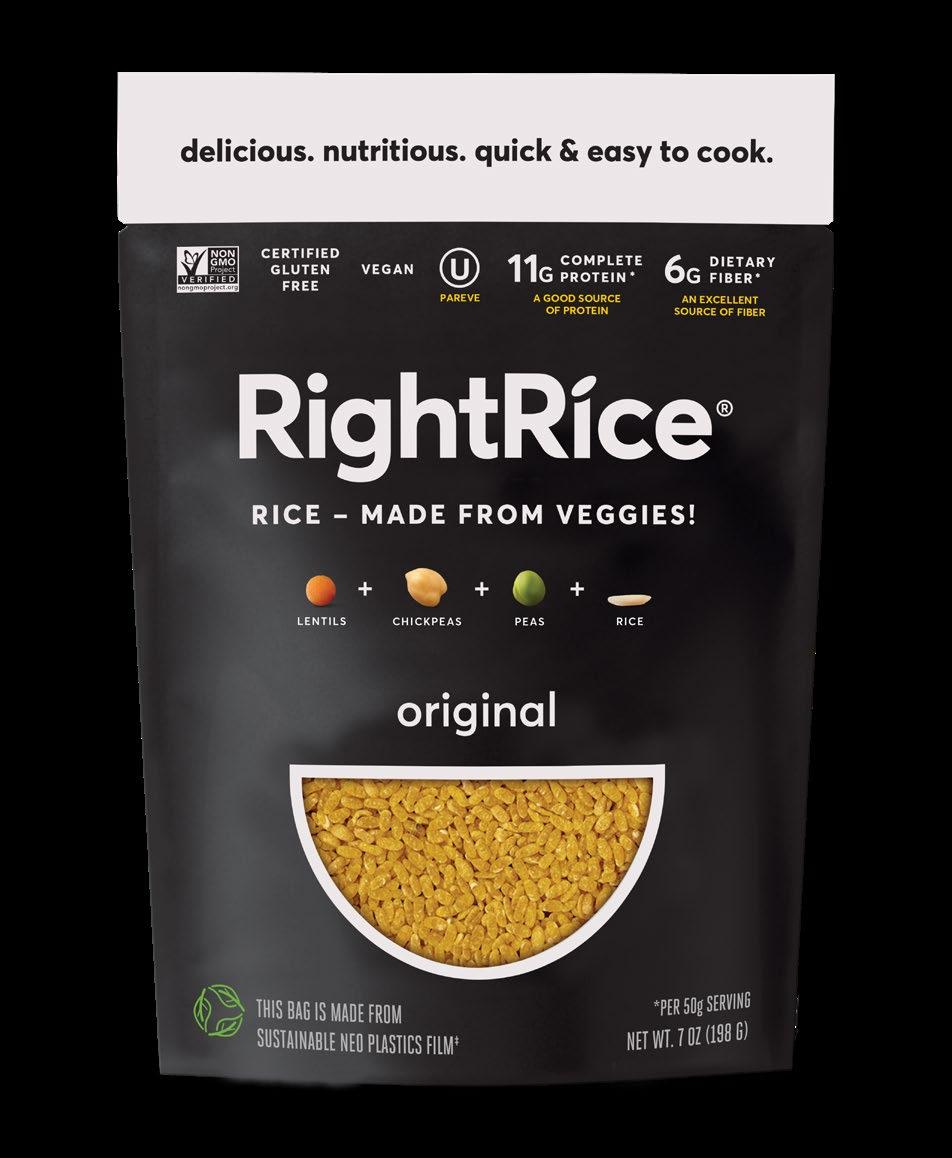 • RightRice® is a ‘rice’ grain made with more than 90% veggies: lentils + chickpeas + peas + just a touch of rice flour.