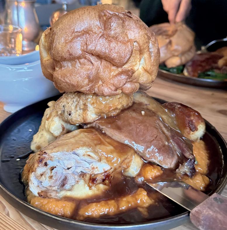 The roast potatoes were not as crisp as I would have liked on the outside but defi nitely fluff y on the inside while the cauliflower cheese melted in the mouth, adding a creamy contrast to the meal. Each Yorkshire pudding was a golden, airy delight, perfect for soaking up the smoky gravy. Vibrant carrots, sweet parsnips, and kale made for colourful and nutritious accompaniments, completing a fantastic Sunday roast.