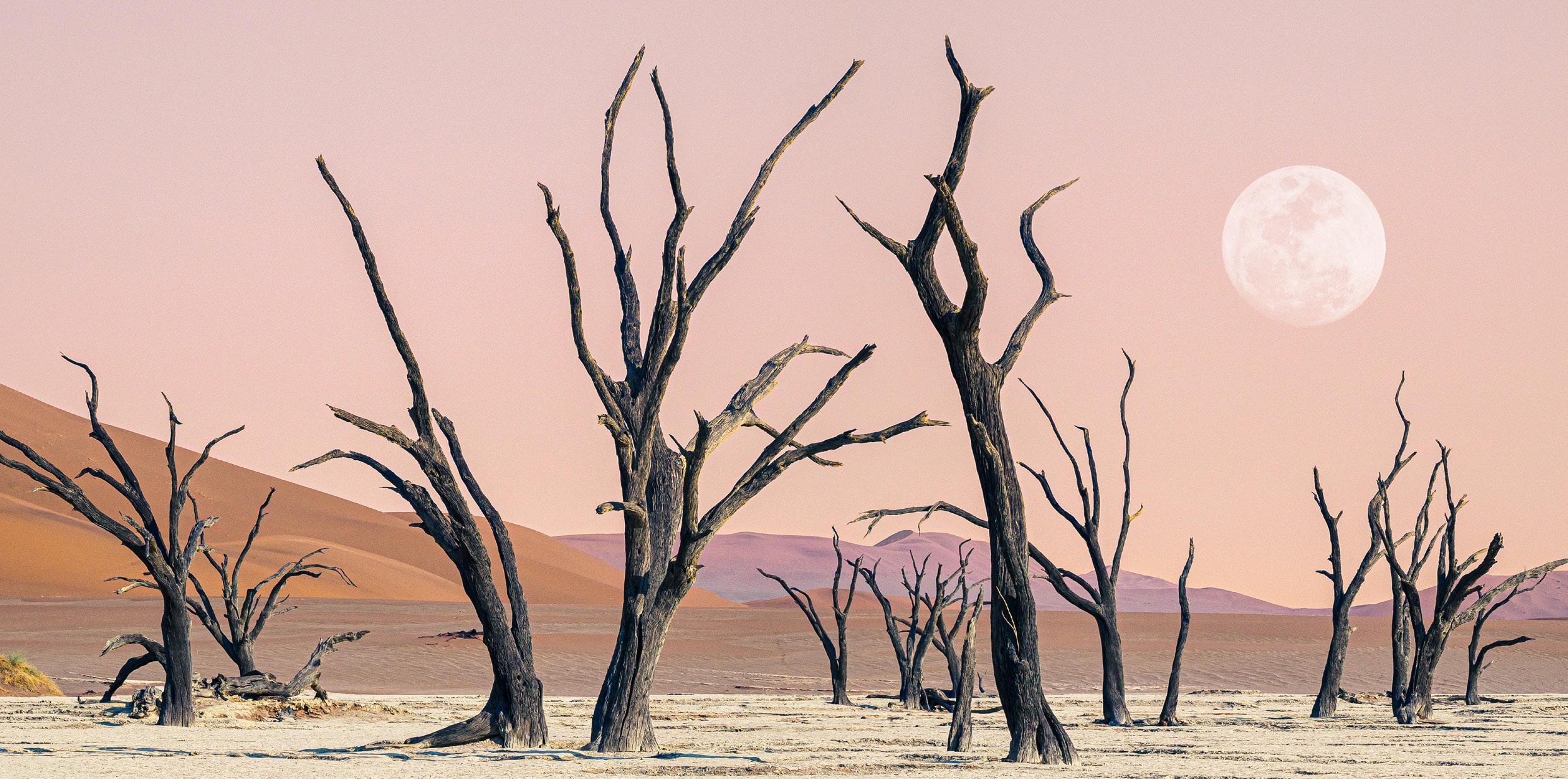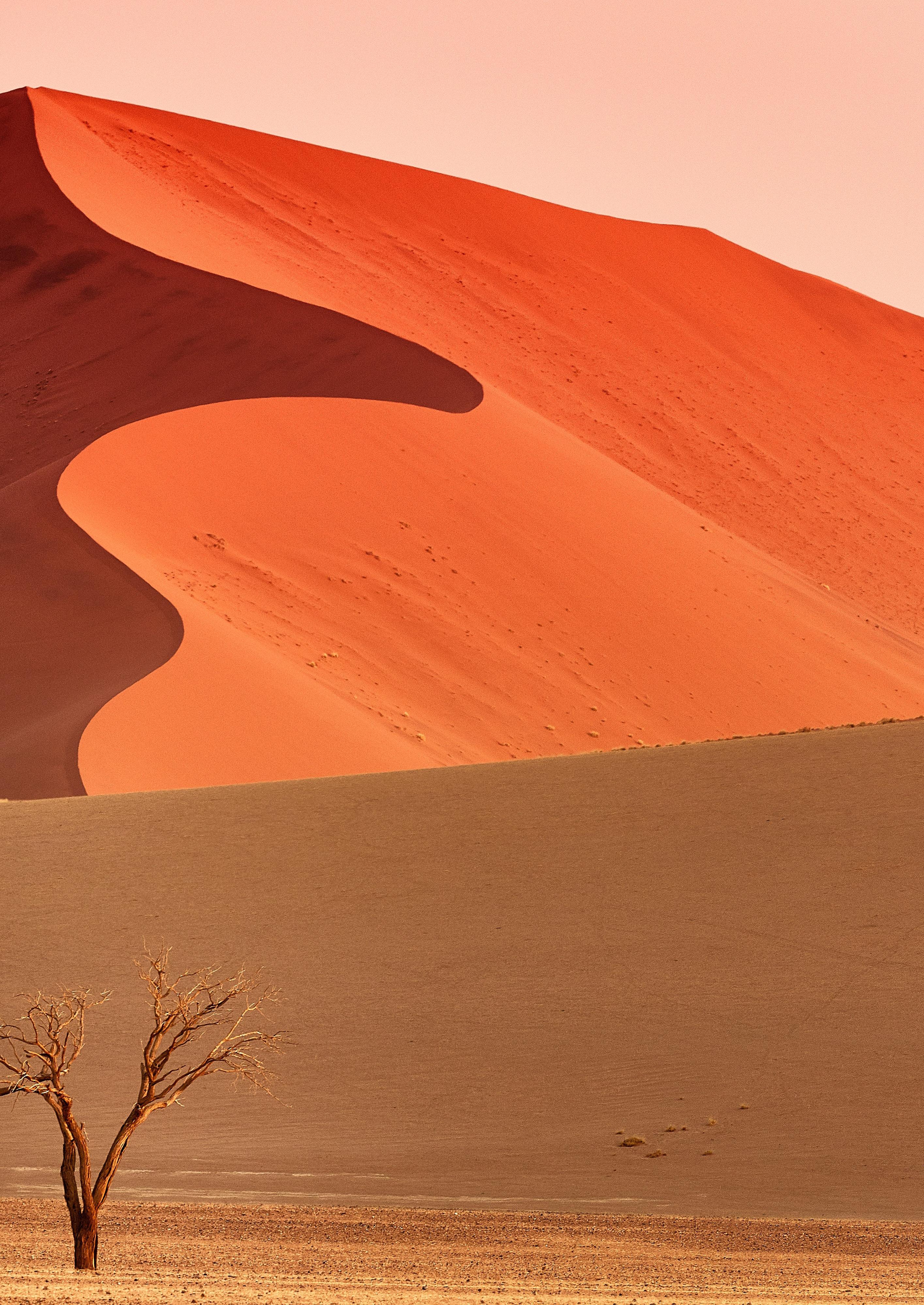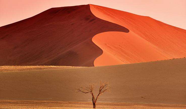 At the heart of Namibia’s allure lies the Namib Desert, the oldest in the world. Its vast, ochre sands stretch endlessly towards the horizon, creating something as magical as it is desolate. In the southern part of this magnificent desert you’ll find Sossusvlei, a white salt and clay pan amongst the red dunes, the contrasting colours showing the desert at its most striking.
