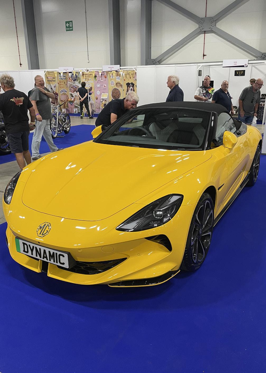 The new MG Cyberster GT stood loud and proud, and made us both smile. It’s quite a design departure from the traditional MG; a rather sexy looking (which is absolutely what a good sports car should be ), fully electric, two-seater sports car with leather seats. I never thought I would use those two adjectives in the same sentence but there is a first time for everything and a sign of the times.