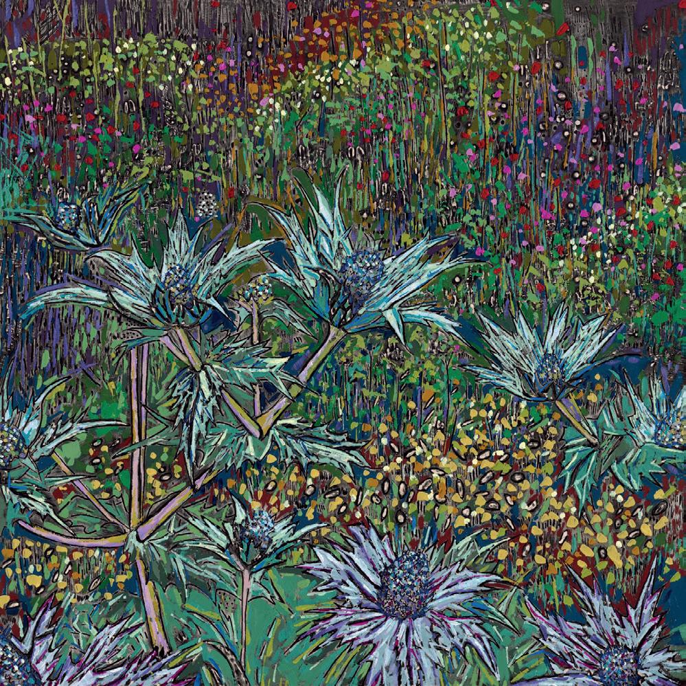 Travel is a key inspiration and can be as simple as walking, journeying, or visiting other places and countries. Earlier pieces had more of a direct correlation, featuring aerial views, combining cityscape and landscape. Recent works use floriography—the language of flowers—to communicate hidden messages (cryptological) in the paintings. An example