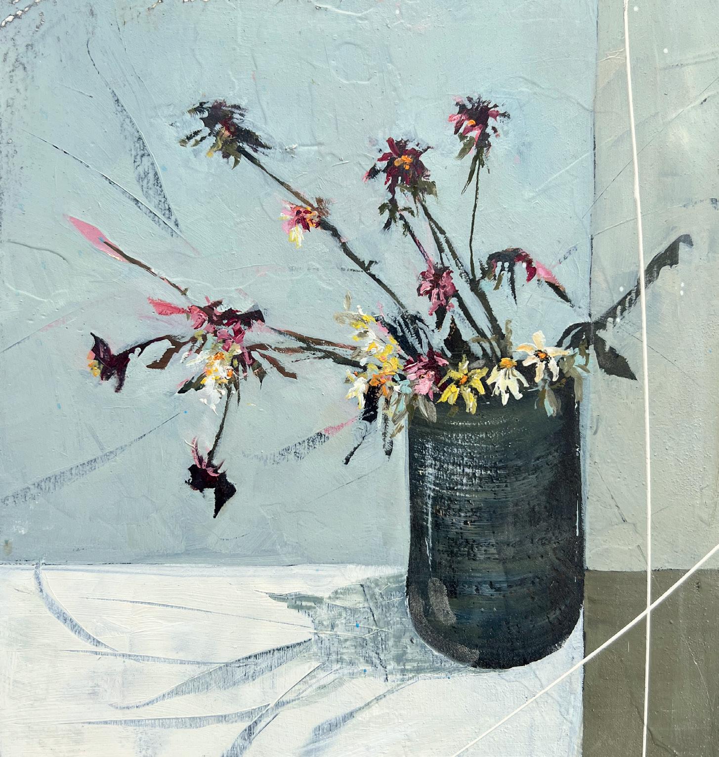 She is interested in random mark-making, believing that each mark has a beauty and energy that cannot be created through meticulous painting