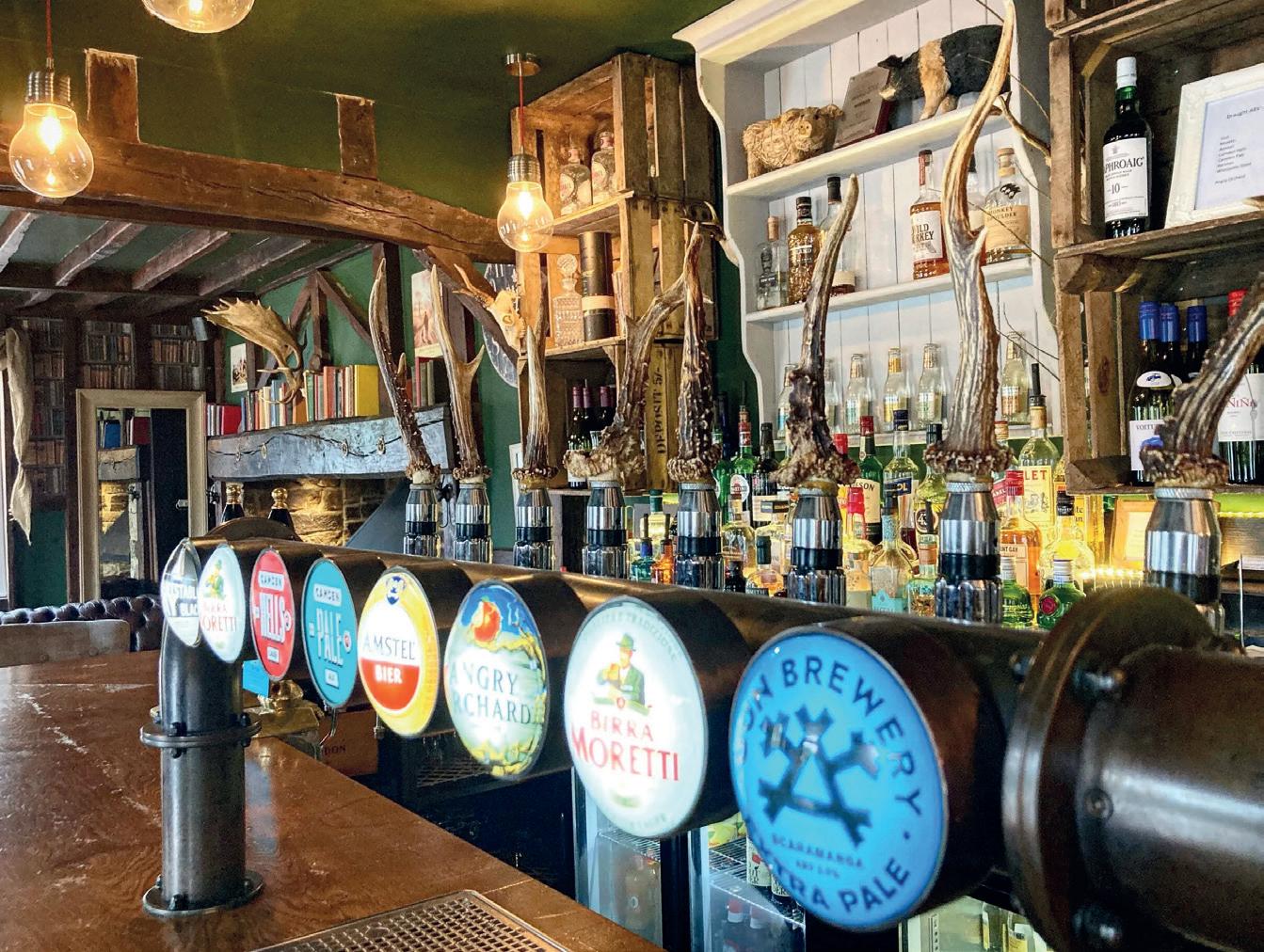 The White Hart doesn’t look like much from the outside but it is lovely inside with exposed beams, leather couches and quirky touches. We were there on a cold Sunday, and were very pleased to fi nd a crackling fi re and a buzzy atmosphere while being invited in as if we were friends, or at least regulars.