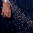 in which cloth is embedded, and threads unravelled, as a painter with her brush.